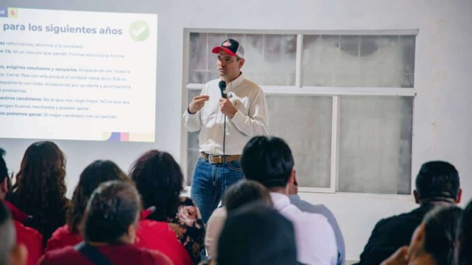 Guerrero.- En el marco de su gira por el municipio de Guerrero, el presidente municipal de Chihuahua Capital, Marco Bonilla, visitó a la militancia del Partido Acción Nacional (PAN) para brindar un mensaje de esperanza frente al bloque opositor rumbo al 2027.