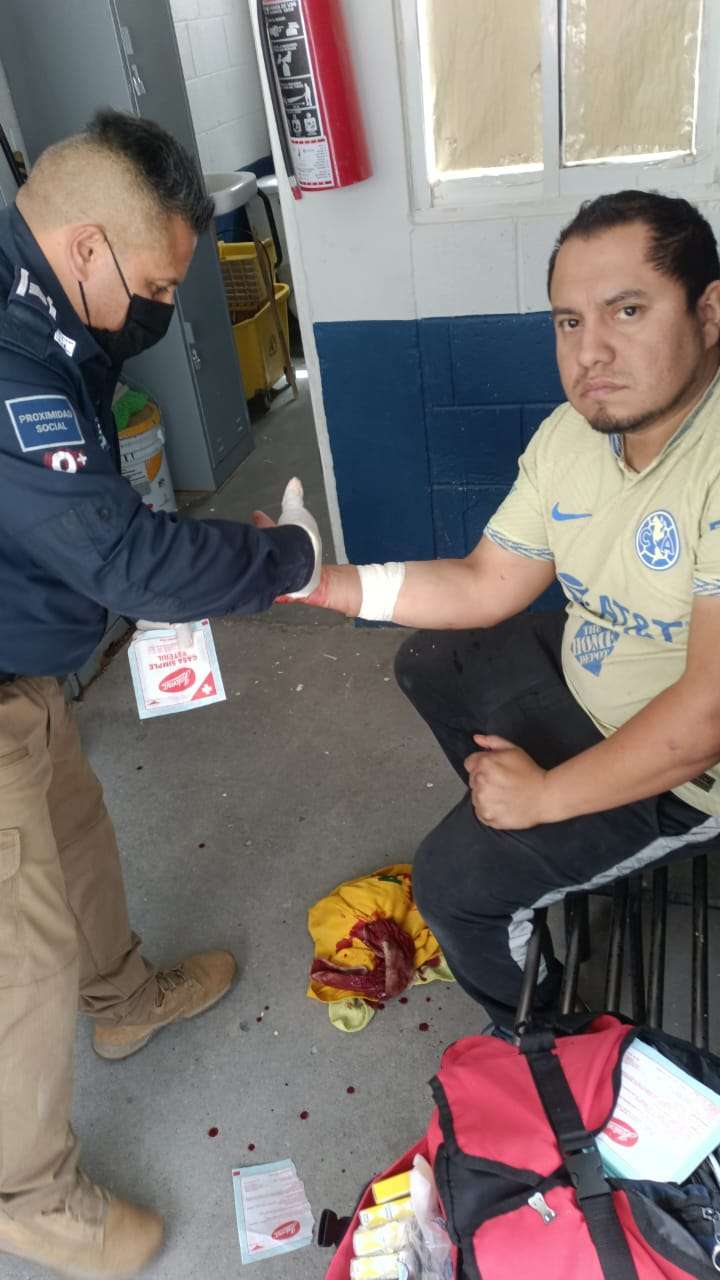 Al llegar a la caseta con su equipo de primeros auxilios, se encontró con el hombre de 35 años que presentaba sangrado abundante. De inmediato hizo un torniquete para detener la hemorragia.