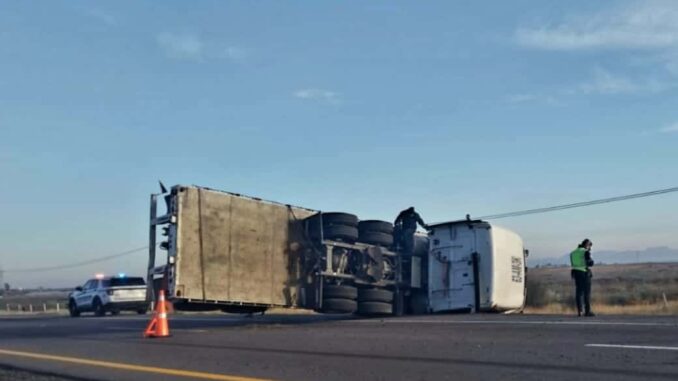 Jiménez.- La Subdirección de Transporte informa de cierre parcial en el tramo Jiménez-Delicias a la altura del kilómetro 163+200, derivado de accidente de tractocamión por desprendimiento de remolque.