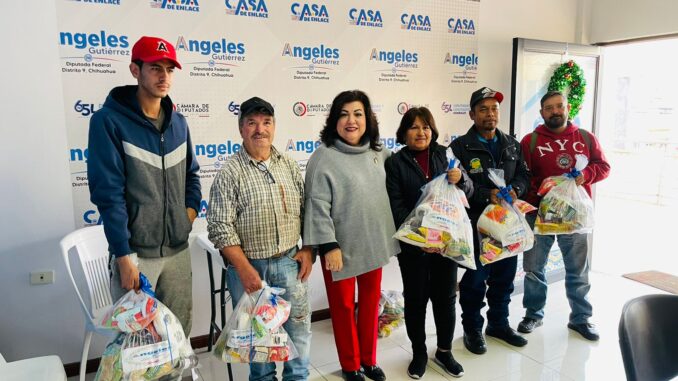 La Diputada Angeles Gutiérrez Valdez recibió en su Casa de Enlace a las y los integrantes del gremio del lavado de autos y de limpiadores de calzado para la entrega de apoyos alimentarios con el propósito de ayudarlos a sobrellevar la temporada de frío.