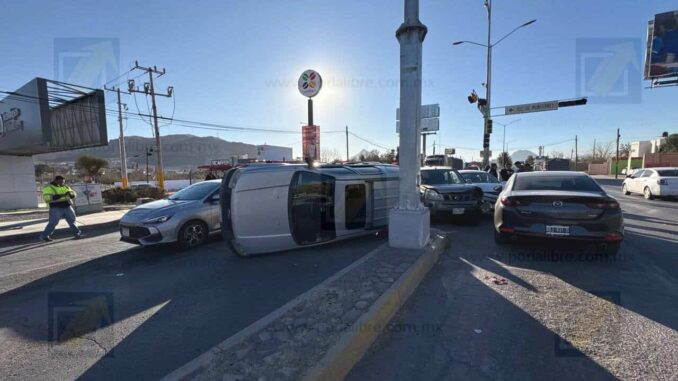 Chihuahua.- Una serie de colisiones y una volcadura se registró esta mañana frente al Tecnológico de Monterrey, donde una joven resultó lesionada tras un percance vial atribuido a la ausencia de señalización preventiva.