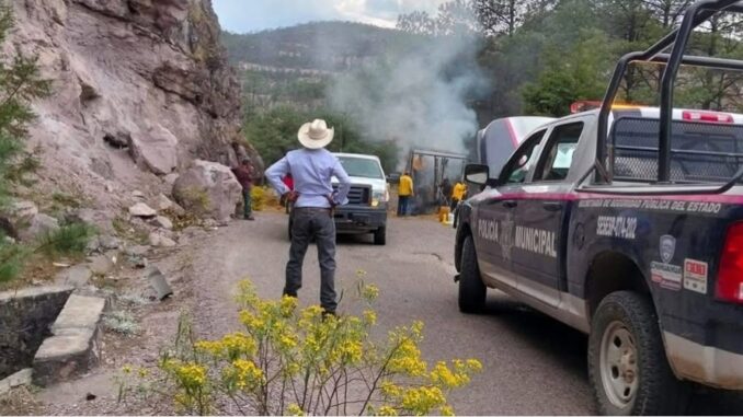 Un incendio consumió un camión sobre la carretera que conecta Guadalupe y Calvo con Parral, lo que generó una rápida movilización de autoridades y la intervención de civiles que transitaban por la zona.