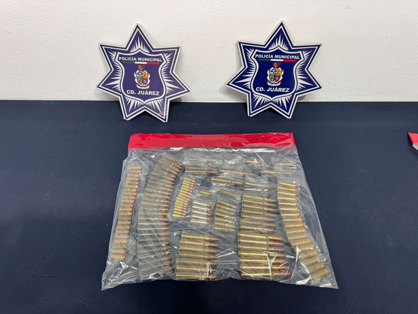Ciudad Juárez.- Elementos de la Secretaría de Seguridad Pública Municipal adscritos a la Estación de Policía del Distrito Valle, aseguraron más de cien cartuchos útiles que se encontraban abandonados en la vía pública.