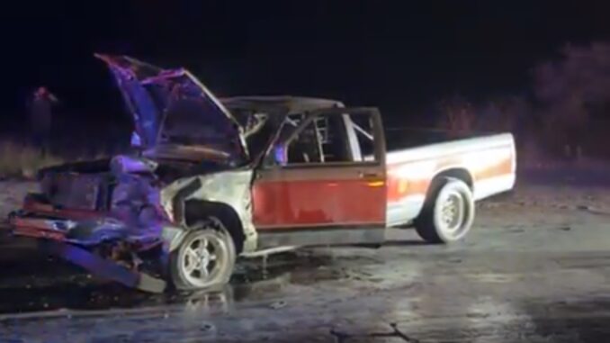 Lamadas de auxilio alertaron sobre una camioneta estrellada a mitad de la carretera a Santa Bárbara y envuelta en fuego en cuestión de minutos.