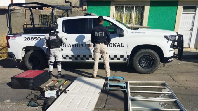 En el cateo efectuado por agentes del Ministerio Público, elementos de la Agencia Estatal de Investigación y Peritos, con apoyo de elementos de la Guardia Nacional, se aseguró, herramienta, una puerta, una ventana y un gabinete, objetos que fueron puestos a disposición del Ministerio Público que integra la carpeta de investigación.