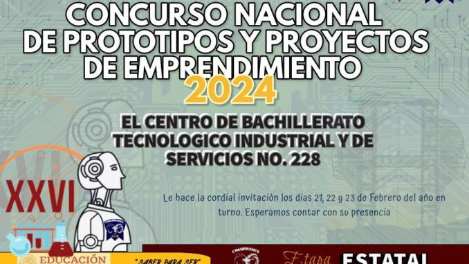 La Comunidad Cimarrona que conforma el Centro de Bachillerato Tecnológico, Industrial y de Servicios No. 228 en Parral, será la sede el XXVI Concurso Nacional de Prototipos y proyectos de Emprendimiento 2024 en su fase Estatal, con el objetivo de que los estudiantes y docentes  DGETI desarrollen sus fortalezas y preserven una cultura de investigación científica y tecnológica en el ámbito de la creación de prototipos y proyectos de emprendimiento, con las líneas de investigación tales como: Desarrollo tecnológico, Investigación Educativa, Desarrollo Sustentable y Medio Ambiente, Investigación en Ciencias de la Salud y Desarrollo humano, social y emocional, que coadyuven y satisfagan las necesidades económicas y sociales de la comunidad y del país.