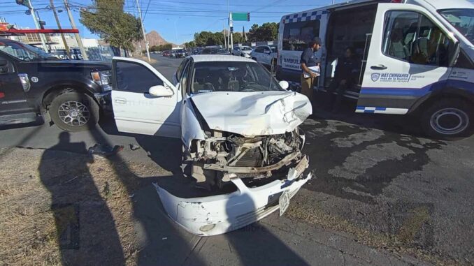 Noticias de Chihuahua.- Un aparatoso choque se registró en la intersección de avenida Homero y Pascual Orozco, luego de que una pickup Ford Super Duty de la empresa Protesa impactara a un Nissan Sentra blanco.