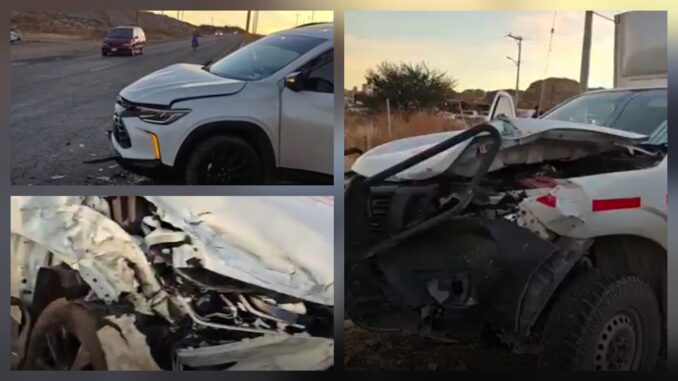De acuerdo con lo que se observó en el lugar, una Chevrolet Tracker blanca circulaba rumbo a Parral cuando otra unidad, una pick up Nissan perteneciente a una empresa, se le atravesó, provocando el impacto. Ambas camionetas resultaron con daños visibles tras el choque.