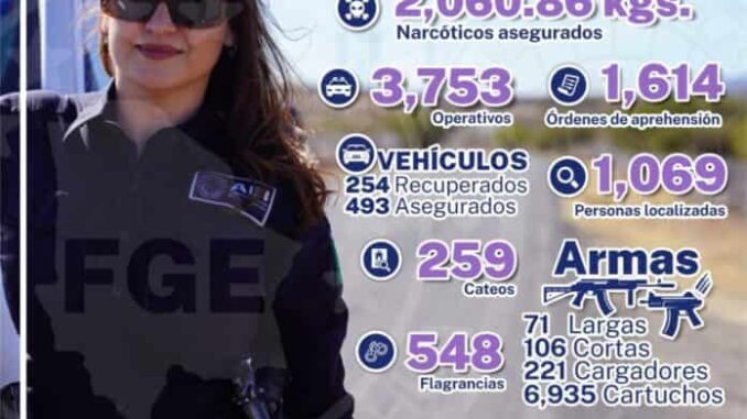 De igual manera, cumplimentaron 1 mil 614 órdenes de aprehensión, realizaron 548 detenciones en flagrancia, y participaron en 259 cateos.