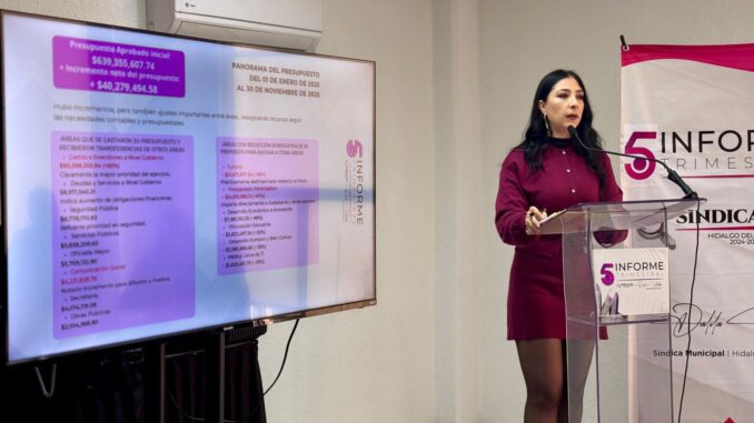 Durante la presentación de su Quinto Informe de Actividades en la Sesión de Cabildo No. 47, la síndica Municipal de Parral, Dalila Villalobos Villalobos, fue enfática al señalar que la función de la Sindicatura no se limita a emitir observaciones, sino que se fortalece mediante el seguimiento permanente y responsable al uso de los recursos públicos.