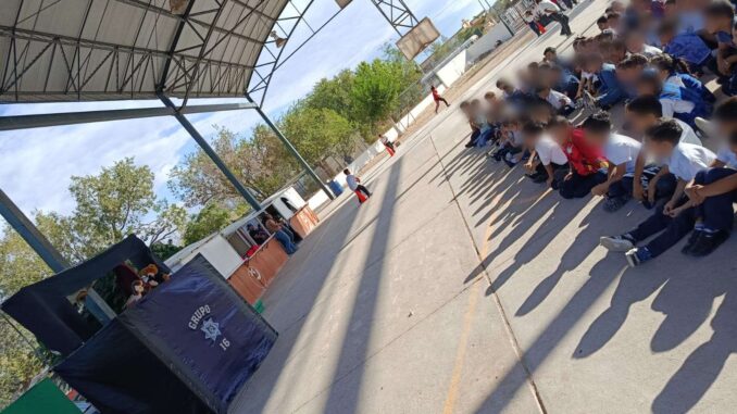 Ciudad Juárez .- Dentro del marco de las acciones de prevención social y apoyo ciudadano, personal de la Secretaría de Seguridad Pública Municipal adscritos a la Dirección de Prevención Social llevaron a cabo una función de “teatrino” en la escuela primaria José de la Paz Rodríguez.