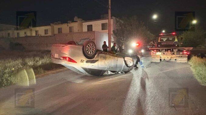 Noticias de Chihuahua.- Un hombre de aproximadamente 65 años volcó su vehículo sobre la calle Galeana y Privada Lógica, en la colonia Villas Nueva España, luego de impactar contra la banqueta y perder el control de la unidad. El automóvil, un Hyundai Sonata gris, quedó con el toldo hacia abajo y presentó daños de consideración.