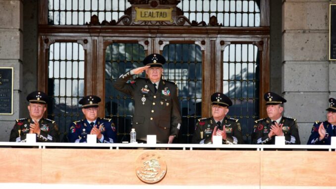 El acto fue presidido por el general Ricardo Trevilla Trejo, secretario de la Defensa Nacional, quien estuvo acompañado por funcionarios de la dependencia, directores de los planteles del Sistema Educativo Militar, agregados militares y aéreos acreditados en México, así como personal militar e invitados especiales.