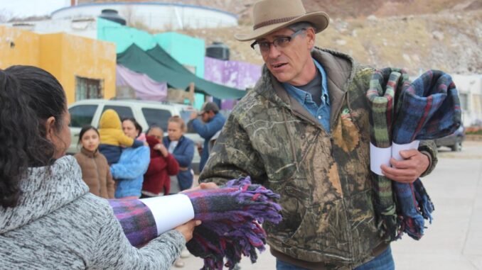 Contra el frío, abriga Jorge Rabling a familias parralenses con cientos de cobijas