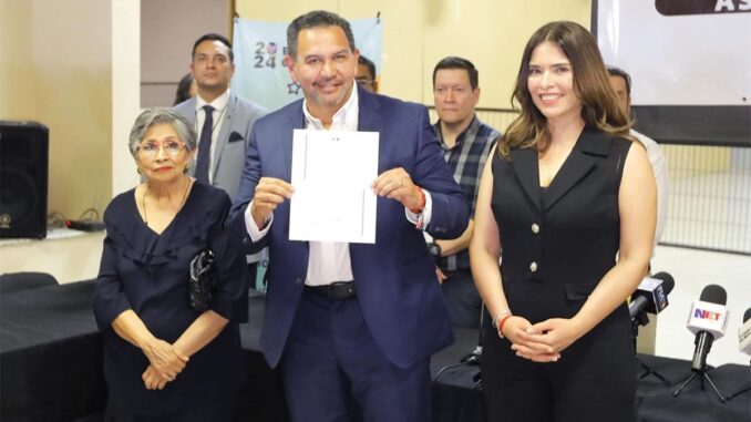 En la entrega de la constancia, el alcalde se acompañó de su planilla de regidores, quienes entrarán en funciones a partir del mes de septiembre, y funcionarios de la actual Administración Municipal, así como colaboradores de la campaña.