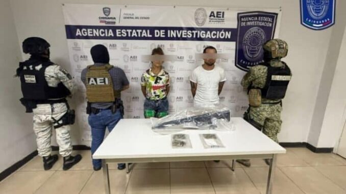 Elementos de la Agencia Estatal de Investigación, adscritos a la Fiscalía de Distrito Zona Norte, detuvieron en flagrancia a quienes se identificaron como Nubia Cristina A. S., de 31 años y Daniel R. M., de 39 años de edad, por los delitos de posesión ilegal de arma de fuego y delitos contra la salud.
