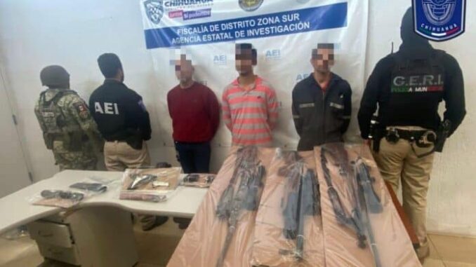 Un operativo integrado por elementos de la Agencia Estatal de Investigación, Ejército Mexicano y Seguridad Pública Municipal, detuvo en flagrancia a tres masculinos, por su probable responsabilidad en el robo de un equipo de cacería y posesión simple de narcóticos, en hechos ocurridos ayer jueves en un inmueble ubicado el barrio de España.