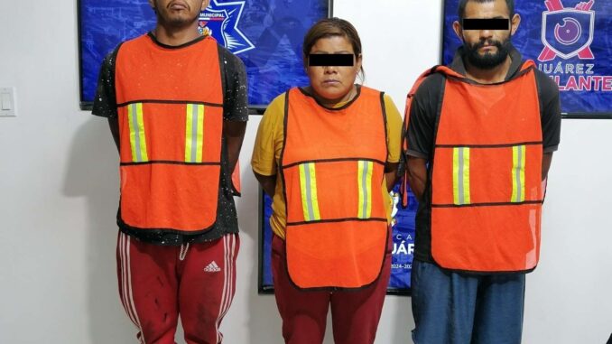 José Alejandro A. L. de 24 años, Isabel C. L. de 38 años, José Alberto G. S. de 34 años, y una adolescente de 15 años, fueron detenidos en el cruce de las calles Del Chabacano y Del Naranjo, en la colonia Lomas de Poleo, al ser sorprendidos desmantelando dos vehículos uno de la marca Honda Accord, color blanco, modelo 1996 con reporte de robo del 06 de octubre de 2025 y una Dodge Ram, color azul, modelo 1998 con reporte de robo del 08 de octubre de 2025.