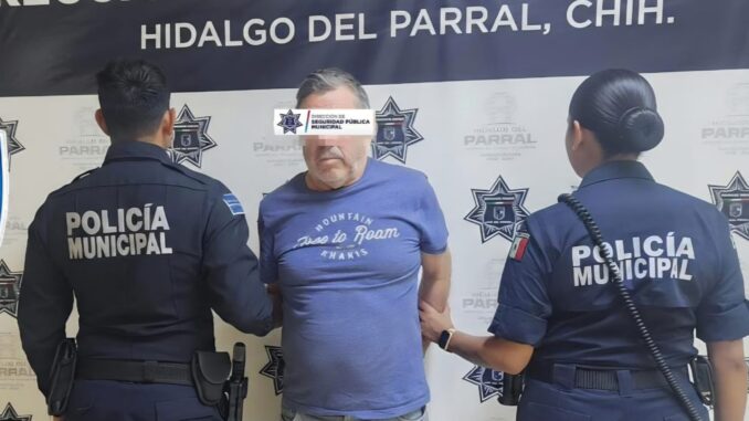 En una rápida intervención, elementos de la Dirección de Seguridad Pública Municipal de Parral (DSPM), a través de Puerta Violeta, detuvieron a Melitón S.L., de 62 años, por su probable participación en el delito de violencia familiar y lesiones en perjuicio de su esposa.