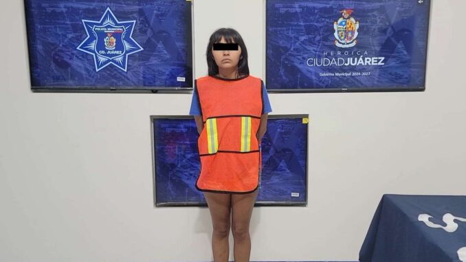 Ciudad Juárez.- Agentes de la Secretaría de Seguridad Pública Municipal adscritos al Distrito Poniente, capturaron a Amy Janine R. originaria de El Paso Texas y a su cómplice un adolescente, por su probable responsabilidad en la comisión del delito de robo con violencia y por delitos contra la ley federal de armas de fuego y explosivos.