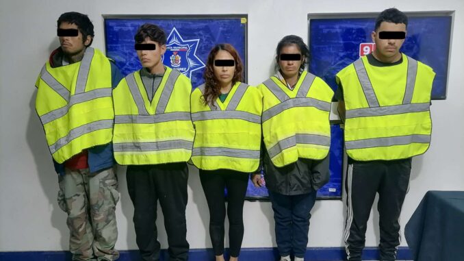 Por lo anterior, fueron detenidos quienes dijeron llamarse Norma Ibeth H. D. de 34 años, Alma Delia C. G. de 31 años, Kevin Alonso C. A. de 18 años, José Manuel M. M. de 25 años, Marcos H. S. de 21 años y un adolescente de 16 años.