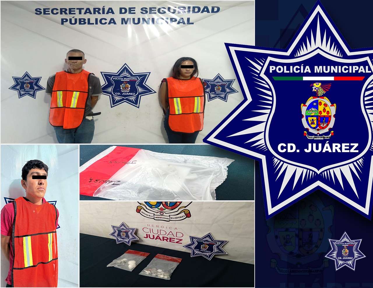 Ciudad Juárez.- Elementos de la Secretaría de Seguridad Pública Municipal arrestaron a tres personas por su presunta responsabilidad en la comisión de delitos contra la salud en su modalidad de narcomenudeo.