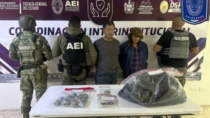 Como resultado, fueron detenidos en flagrancia por delitos contra la salud, Leticia E. Z., de 62 años, originaria de la ciudad de Chihuahua, y Arnulfo L. S. de 46 años, originario de ciudad Durango, Durango.