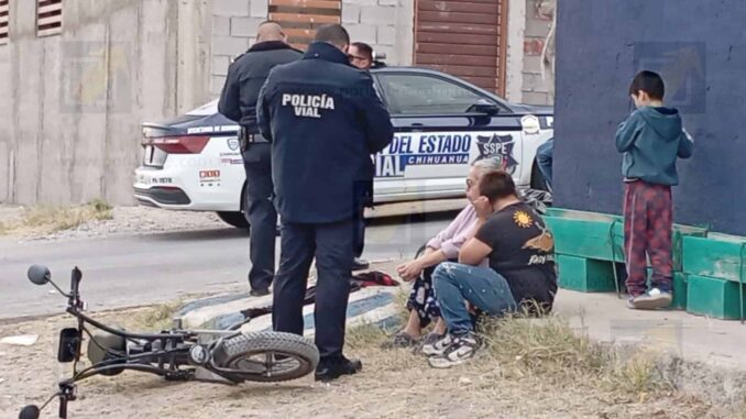 Chihuahua.- Un accidente vial se registró al sur, luego de que dos niños que viajaban en una moto eléctrica fueran embestidos por una camioneta en una intersección, dejando como saldo a ambos menores lesionados, aunque sin heridas de gravedad.