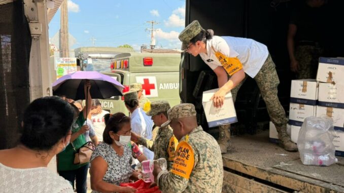 Con 2,179 efectivos y 4 helicópteros, las fuerzas armadas han trasladado 13,305 despensas y 45,438 litros de agua, además de evacuar a 38 personas en tres municipios. Se habilitaron 6 albergues con capacidad para 1,871 personas y se llevaron a cabo labores de limpieza de más de 14,300 m³ de lodo y tierra. También operan una planta potabilizadora, hospital militar, cocina móvil y drones de reconocimiento.