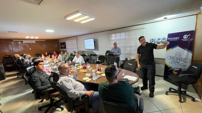 El alcalde Salvador Calderón y el director de la Dirección de Seguridad Pública Municipal (DSPM), Alejandro González Arzaga, participaron en la mesa de seguridad mensual convocada por el Fideicomiso para la Competitividad y Seguridad Ciudadana (FICOSEC), donde se presentaron los resultados operativos correspondientes al mes de junio.