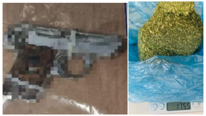 Personal de la Agencia Estatal de Investigación (AEI) encontraron la mañana de este jueves una pistola calibre .22 sin cargador y una bolsa de plástico que contenía 175.5 gramos de mariguana.