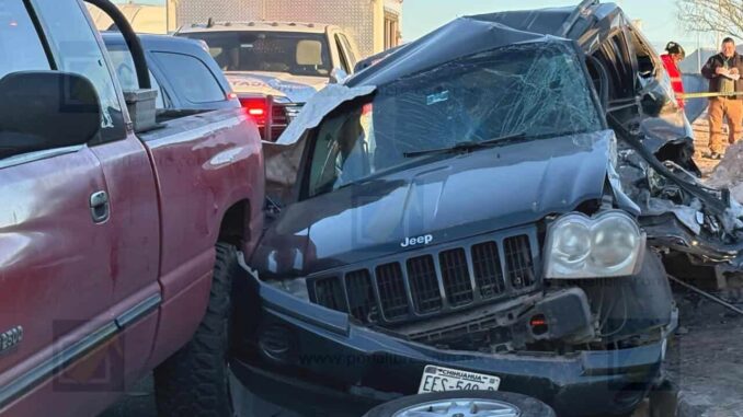 Chihuahua.- Un fuerte accidente registrado la tarde de este día en la zona sur de la ciudad provocó la muerte de una persona y dejó al menos 17 lesionados, luego del impacto entre un camión urbano y una camioneta Jeep Cherokee.