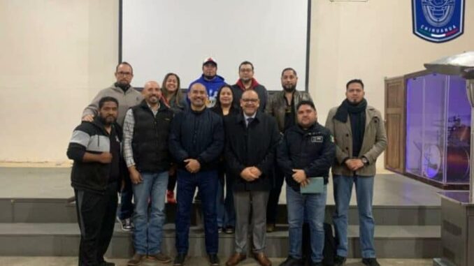 Capacitación que estuvo a cargo del Juez en retiro, Dr. Marco Palma Meléndez, quien compartió conocimientos a los agentes, en el curso efectuado la mañana de este viernes, en las instalaciones de la Instituto Blas Pascal, en el municipio de Nuevo Gasas Grandes.