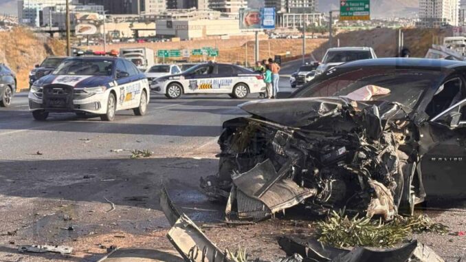 Noticias de Chihuahua.- El conductor de un Chevrolet Malibú, que circulaba de sur a norte, perdió el control al pasar por un tramo con agua sobre la cinta asfáltica. El vehículo brincó el camellón e invadió el carril contrario, donde terminó impactando de forma frontal–lateral contra un Jeep Gladiator que viajaba en sentido norte a sur.