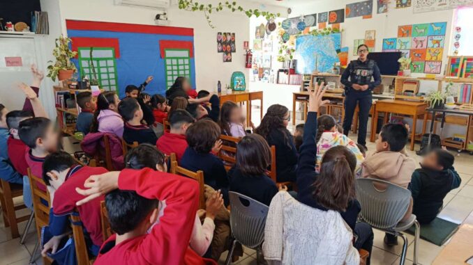 Ciudad Juárez.- La Secretaría de Seguridad Pública Municipal, a través de la Dirección Operativa de Prevención Social, llevó a cabo pláticas preventivas en el colegio Alba Montessori, dirigidas a estudiantes de nivel básico.