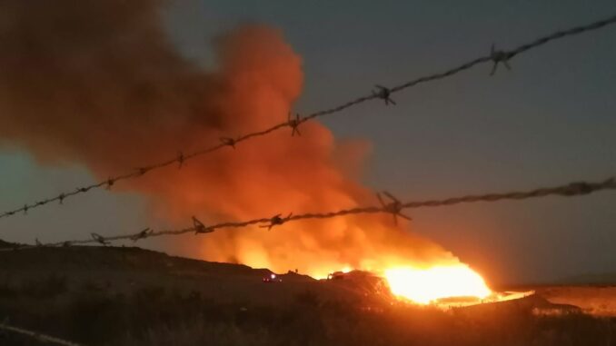 Alrededor de las 7 de la tarde de este miércoles, el sistema de emergencias 911 recibió un llamado de auxilio desde las instalaciones del relleno sanitario, sobre la salida a Jiménez, ya que se estaba incendiando.