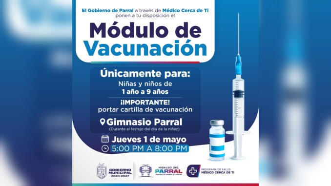 La jornada se realizará el próximo jueves 1 de mayo, de 5:00 p.m. a 8:00 p.m., en las instalaciones del Gimnasio Parral, en el marco del festejo por el Día de la Niñez. El servicio será gratuito y estará a cargo de personal médico capacitado, con el respaldo del área de Salud Municipal.