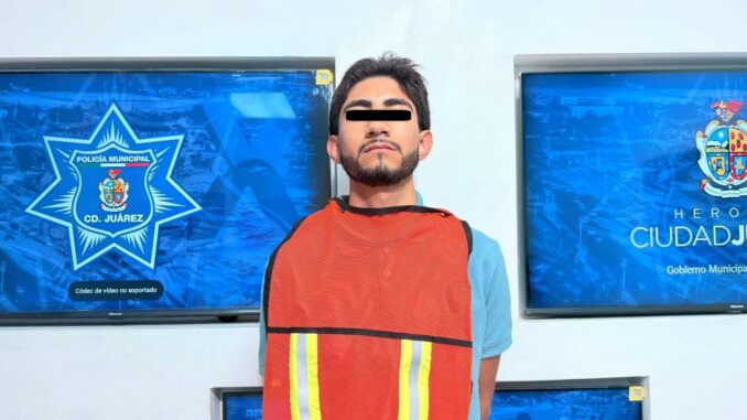 Ciudad Juárez -. Elementos de la Secretaría de Seguridad Pública Municipal, adscritos a la Estación de Policía del Distrito Riveras, detuvieron a Diego Armando A. R., por su presunta responsabilidad en la comisión del delito de homicidio y delitos contra la ley federal de armas de fuego y explosivos.