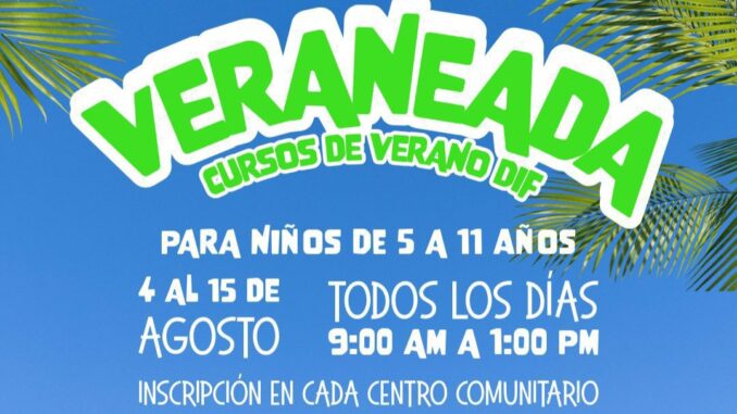 El DIF Municipal convoca a madres, padres y tutores a inscribir a sus hijas e hijos en la Veraneada 2025, que se llevará a cabo del 4 al 15 de agosto, con un horario de atención de 9:00 de la mañana a 1:00 de la tarde, de lunes a viernes.