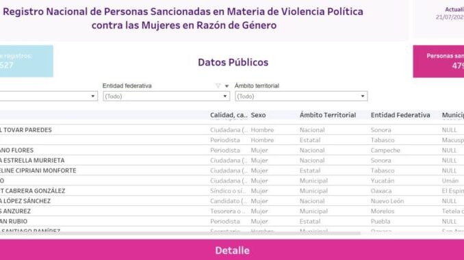 Así, el Instituto Nacional Electoral (INE) acató la sentencia e hizo públicos los datos de Karla Estrella, cuyo nombre aparece junto a otras 526 personas sancionadas por violencia política contra las mujeres en razón de género.