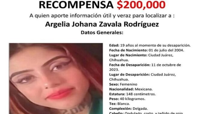 Autoridades estatales y familiares de Argelia Johana Zavala Rodríguez solicitan la colaboración de la ciudadanía para dar con su paradero.