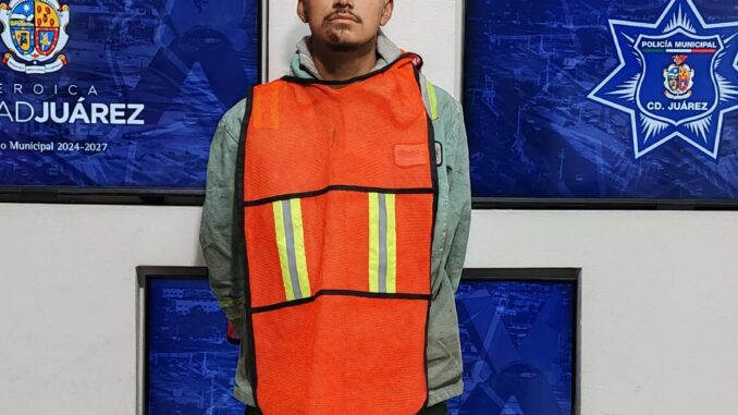 Ciudad Juárez-. Elementos de la Secretaría de Seguridad Pública Municipal, realizaron la detención de Marco O. P., por su presunta responsabilidad en la comisión del delito de posesión de vehículo con reporte de robo.