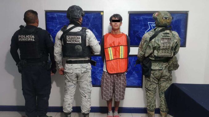 Ciudad Juárez .- Agentes de la Secretaría de Seguridad Pública Municipal en coordinación con Guardia Nacional y la Secretaría de la Defensa Nacional, arrestaron a Ramón Alexis M. J., por su presunta responsabilidad en la comisión de delitos contra la ley federal de armas de fuego y explosivos.