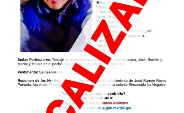 La Unidad de Investigación de Personas Ausentes y/o No Localizadas de la Fiscalía de Distrito Zona Centro (FDZC) localizó sano y salvo a José Ramón R. P., de 29 años de edad, quien contaba con reporte de ausencia interpuesto en la ciudad de Chihuahua.