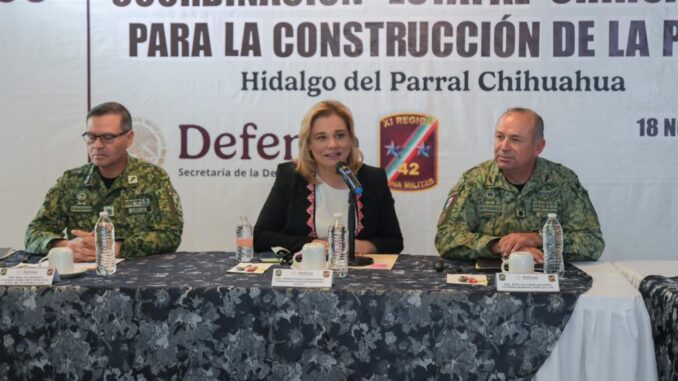 La gobernadora Maru Campos encabezó la sesión de la Mesa Estatal de Construcción de Paz que se llevó a cabo en Parral, con el fin de analizar las estrategias implementadas por los tres niveles de Gobierno para atender la seguridad en la región.
