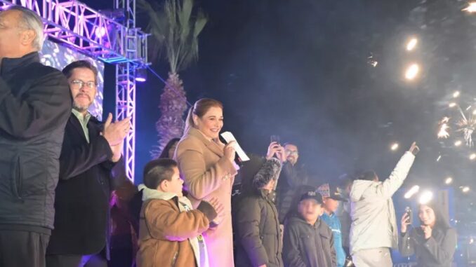 La gobernadora Maru Campos celebró con las y los juarenses el inicio de las fiestas decembrinas, al encabezar el encendido del tradicional Árbol de Navidad en el Parque Central de la ciudad fronteriza.