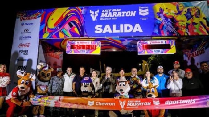 El gobernador de Sinaloa, Rubén Rocha Moya, encabezó el banderazo de salida del XXIV Maratón Internacional de Mazatlán, evento que reunió a más de seis mil corredores nacionales y extranjeros y que, de acuerdo con el mandatario, consolida al puerto como un referente deportivo a nivel nacional e internacional.
