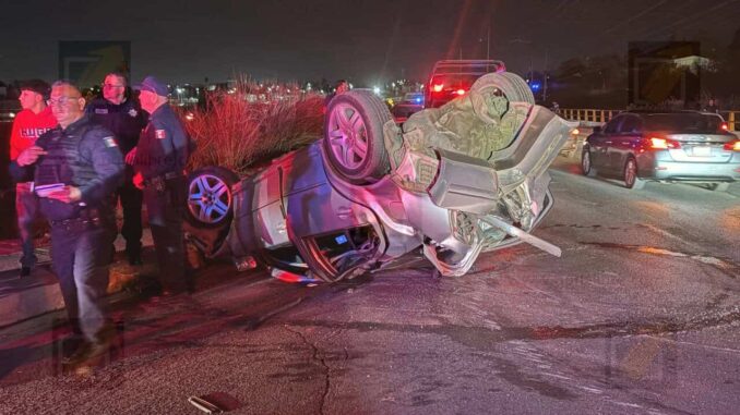 De acuerdo con los primeros reportes, el conductor impactó primero contra el muro de contención, posteriormente el vehículo continuó su trayectoria realizando giros de trompo y terminó chocando de reversa contra un poste. Finalmente, la unidad quedó volcada sobre la vialidad, justo en la zona del retorno.
