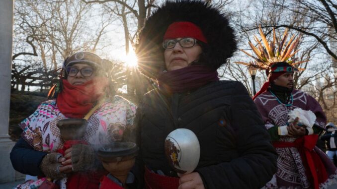 “¡Viva la Guadalupe! ¡Viva el indio Juan Diego! ¡Viva México!”, se escuchó en Central Park, donde los mexicanos rindieron homenaje a su Guadalupana con una danza prehispánica y cantando.