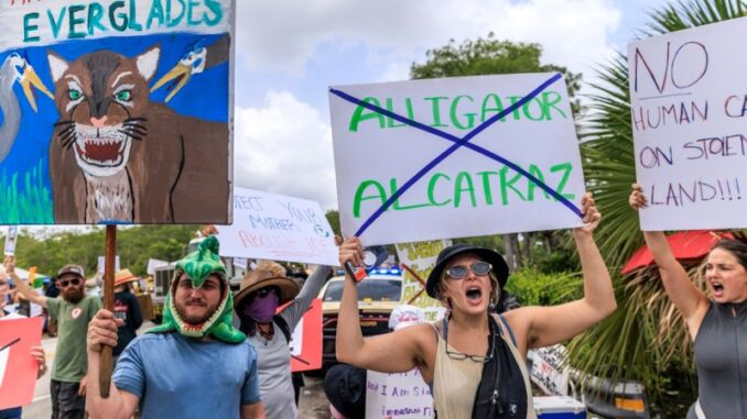 Migrantes describen un infierno en el centro de detención 'Alligator Alcatraz' - protesta-contra-alligator-alcatraz-nuevo-centro-de-detencion-para-migrantes-en-florida